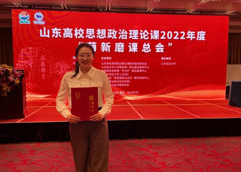 2月25日至26日,山东高校思想政治理论课2022年度“萌新磨课总会”在泰安举办,省内18所学校的19位入围决赛的思政课青年教师分别在本科高校和高职高专两个组现场进行教学展示。山东省教育厅总督学仲红波、思政处处长陈成标、副处长仇宝艳等领导出席会议。我校马克思主义学院2022年新入职教师徐子珺喜获本科组一等奖好成绩,展现了我校青年教师的扎实功底和精神风采。