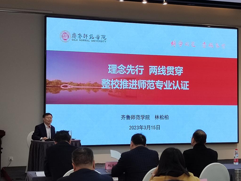 3月13日至17日,我省2023年度师范类专业认证培训会议在济南召开。本次会议由省教育厅主办,省教育学会承办,以线上线下相结合的方式举行,全省设有师范类专业的高校领导、学院代表等400余人参加会议,我校党委书记林松柏、外国语学院院长宋秀葵受邀在大会上作专题报告。