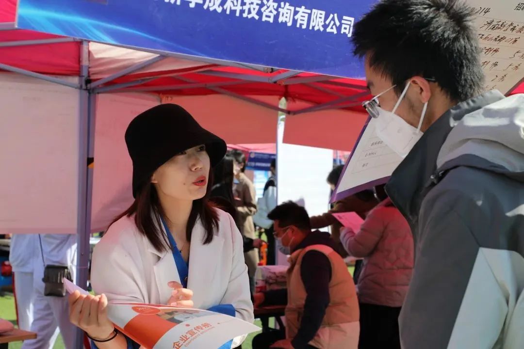 为深入贯彻落实党中央“就业优先”决策部署,积极推进春季促就业攻坚行动,全力促进我校毕业生顺利就业、充分就业、高质量就业,4月8日,新利18全站app “‘就选山东 情留齐鲁’2023届毕业生集中招聘活动”在章丘校区田径场成功举办,来自省内外320家用人单位到场参会,提供岗位21027个,5000余名学生踊跃参加。校党委副书记赵敏、章丘区人社局局长李士锋现场调研用人单位人才招聘情况。章丘区人社局、大学园区管理服务中心、章丘区中华职业教育社、淄博高新区人社中心相关负责同志,校党委办公室、党委宣传部、学生工作部(处)、安全管理处、团委、后勤管理处等相关部门负责同志、各二级学院党委副书记、毕业班辅导员共同参加活动。