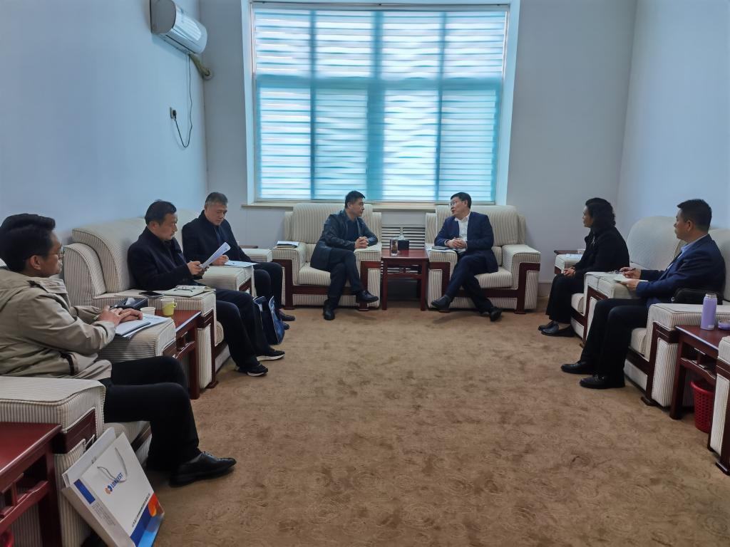 4月25日下午,章丘区教育和体育局党组书记、局长刘国兴一行到学校对接合作,学校党委书记林松柏、党委副书记赵敏接待来访并举行座谈交流。章丘区教育和体育局办公室主任王惠、宣传法规科科长李保芝、章丘四中绣源河南校区校长张勇,学校合作发展办公室负责人刘勇参加座谈会。