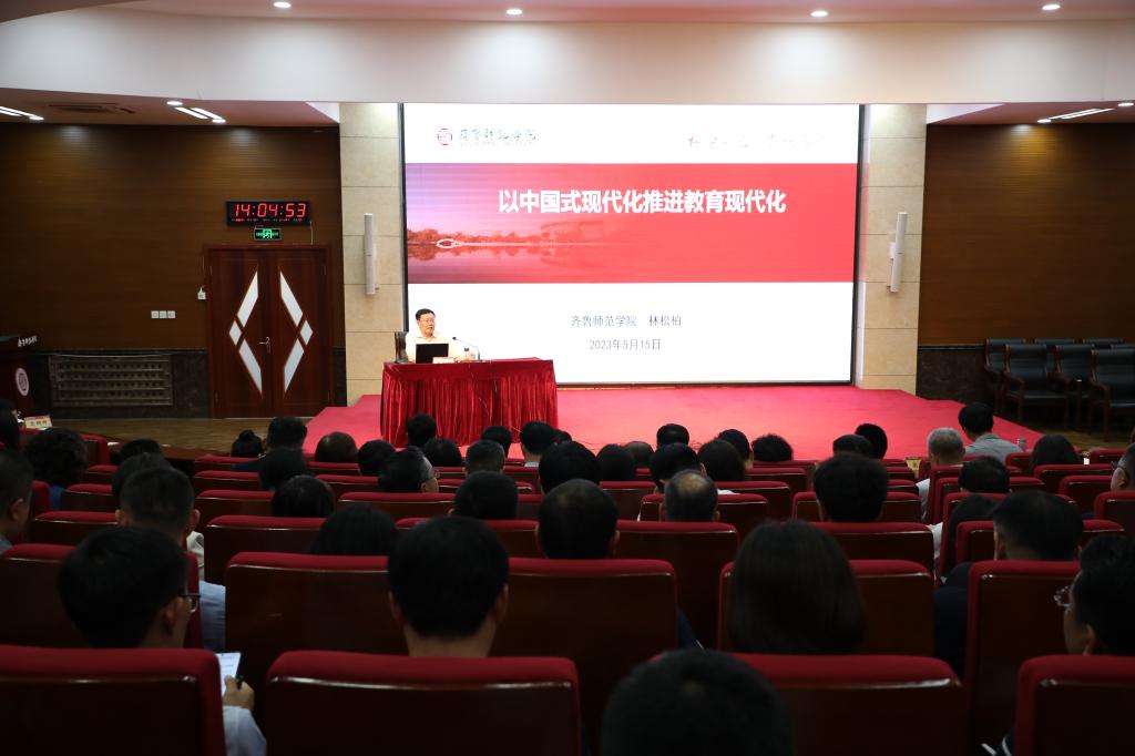 林松柏从中国式现代化的提出出发,阐释了中国式现代化的科学内涵,从“九个坚持”“五育并举”“四个加快建成”等习近平总书记对教育的要求及教育现代化的目标、基本理念、基本原则、十大战略任务、实施路径出发,深刻解读了教育现代化的任务要求,最后从回归教育本质、转变教育观念、重构人才培养方案、加快课程建设、加强教材体系建设、重塑保障体系、服务国家战略等七个方面,指出在当前新时代新征程上,学校如何立足实际、发挥优势,在教育现代化新征程中做出“新利18全站app 贡献”。