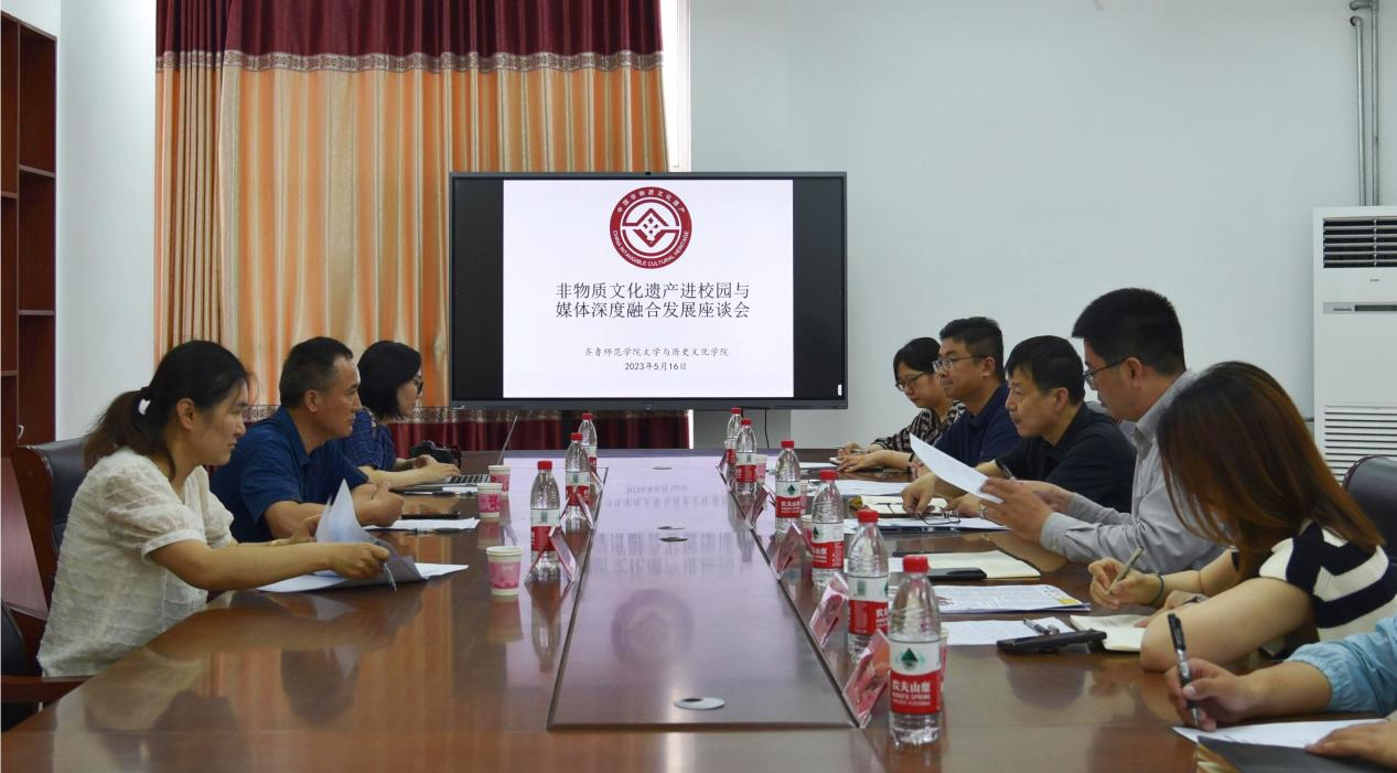 会谈活动结束后,王希忠一行就“非遗进校园与媒体深度融合发展”问题在文学与历史文化学院举行专题座谈会,文学与历史文化学院院长张文哲、党委书记胡义忠、副院长朱振华参加了座谈会。