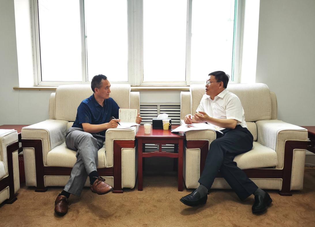 5月16日上午,为进一步服务黄河流域生态保护和高质量发展重大战略,深入贯彻落实中共中央办公厅、国务院办公厅《关于进一步加强非物质文化遗产保护工作的意见》精神,推动非遗保护利用与媒体深度融合发展,由新利18全站app 中国乡村调查研究中心举办的“非物质文化遗产进校园与媒体深度融合发展座谈会”在章丘校区召开。《山东商报》执行总编辑王希忠、文旅新闻中心主任朱德蒙、文旅新闻中心记者王宇琦就学校开展的“非物质文化遗产进校园”和文化遗产本科专业建设工作展开专题调研。新利18全站app 党委书记林松柏亲切会见了调研团队一行,并应邀就学校近年深入开展的“传统武术进校园”工作作了专题访谈。
