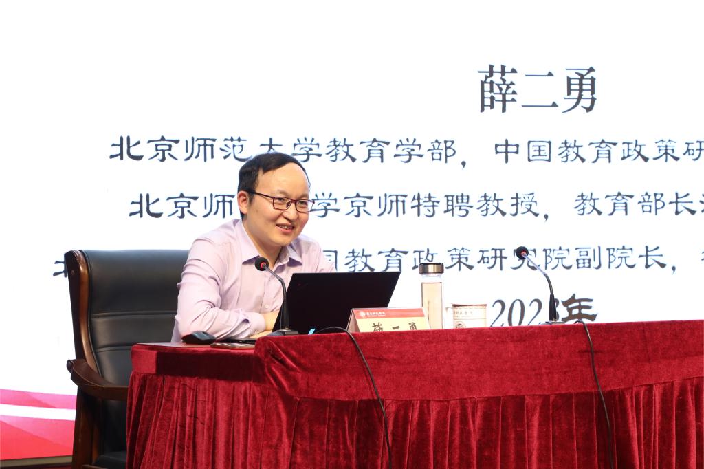 薛二勇教授从新时代我们面临的新形势、新挑战和新任务三个角度对建设教育强国进行了深入阐述。他指出,党对教育事业的全面领导、优先发展教育的运行机制、坚持把立德树人作为根本任务以及三全育人教育体系共同构成了中国特色社会主义教育理论。薛二勇教授基于教育改革形势的变化,深入分析了当前面临的四大挑战,即来自教育供给改革、教育主要矛盾变化、教育体制机制以及教育综合改革的挑战。最后,薛二勇教授解读了新时代我们的新任务是对如何建设高质量的教育体系,他强调,要以评价改革推进教育供给侧改革,不断推进各级各类教育协调发展、提升教育质量,落实立德树人根本任务、坚持正确的方向,推进教育综合改革、建设协同性教育体系。