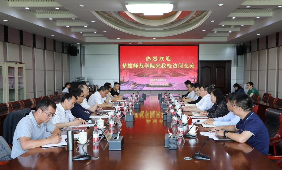 5月22日,楚雄师范学院党委书记何伟全一行8人到新利18全站app 考察交流。学校党委书记林松柏,党委副书记赵敏,党委委员、副校长孙正热情接待了考察团一行。