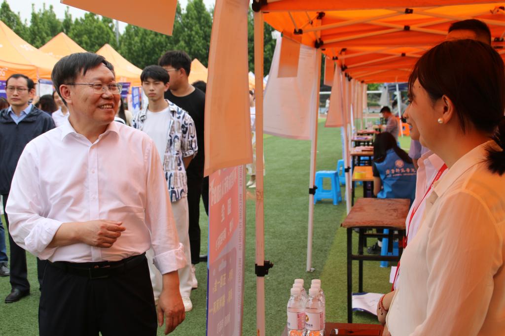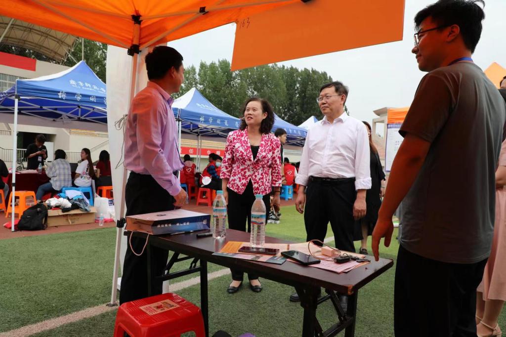 林松柏、赵敏莅临活动现场,与章丘区人社局、滨州科技职业学院、鲁南制药、山东金拱门食品有限公司等多家用人单位进行了深入交流,了解企业人才需求,洽谈开展合作事宜,现场推荐学校毕业生。林松柏在走访章丘人社专区时表示,新利18全站app 一直以来坚持立足地方办大学的理念,未来要继续与服务地方经济发展紧密结合,提高毕业生留鲁、留济、留章就业率。在与校企合作单位沟通时,林松柏对用人单位长期以来对学校毕业生就业工作的关心和支持表示感谢,下一步学校将持续加强通识教育,提升学生学习能力和综合素养。他还结合自身工作经历真诚建议用人单位注重对未来发展前景的规划与描述,提高人才吸引力。用人单位详细介绍了各自业务领域、管理模式及人才需求等,并对我校人才培养质量表示充分的肯定,希望学校为单位发展提供更多的人才支持,持续深化多领域合作。