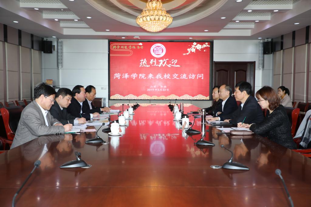 3月22日,菏泽学院党委书记王焕良一行来我校交流访问。党委书记王玉华,副校长张福建会见了客人,校长办公室、学生工作部(处)负责人参加了座谈。