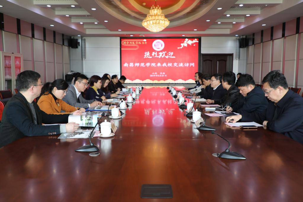 3月21日,南昌师范学院党委委员、副校长胡小萍一行来我校交流访问。学校党委副书记、校长林松柏会见了客人,校长办公室、学生工作部(处)、人事处、教务处、教学质量监控与评估处负责人参加了座谈。