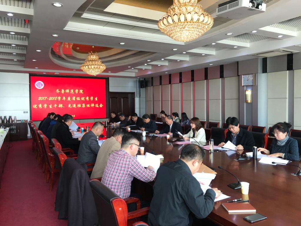 为深入贯彻落实全国、全省教育大会精神,树立大学生先进典型,营造浓厚优良学风校风氛围,根据《山东省教育厅关于评选高等学校优秀学生、优秀学生干部和先进班集体的通知》相关要求,3月13日下午,我校在章丘校区图书馆四楼会议室召开2017—2018学年度省级优秀学生、优秀学生干部和先进班集体推荐评选会,党委书记王玉华,教务处、学生工作部、团委负责人及各学院学生工作办公室主任担任评委,王玉华书记主持会议并讲话。