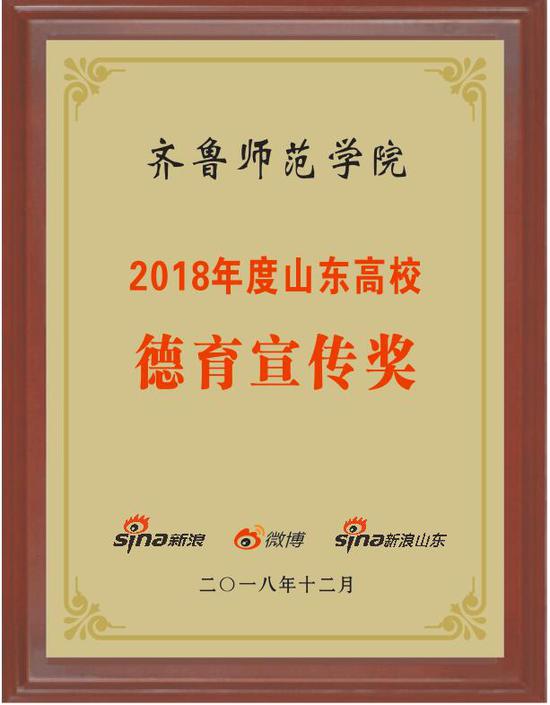 12月初,新浪网2018年度山东教育新媒体宣传奖项榜单盛大发布,我校荣获“2018年度山东高校德育宣传奖 ”。