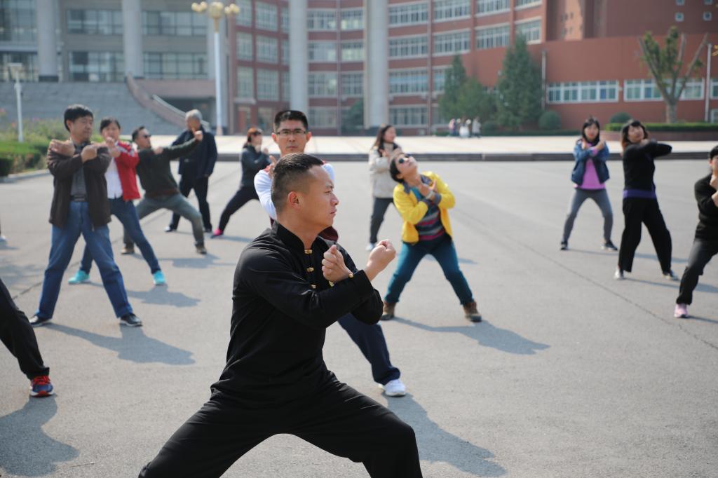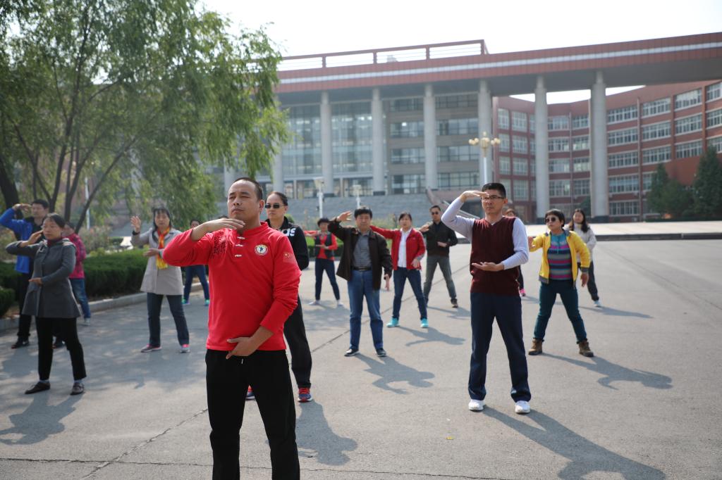 近日,我校工会根据校党委、校行政关于开展全民健身活动、关心教职工健康的要求,组织开展了为期3个周的“八段锦”健身学习活动。生命在于运动,健康相伴行远,高节奏的现代生活离不开健身运动的良好习惯。为增强全校教职工参与体育健身活动兴趣,养成重视和热爱体育运动,加强身体锻炼的健康意识,我校专门聘请了嵩山少林寺武术馆焦宏敏等老师,来校为大家现场教授传统健身功法“八段锦”。