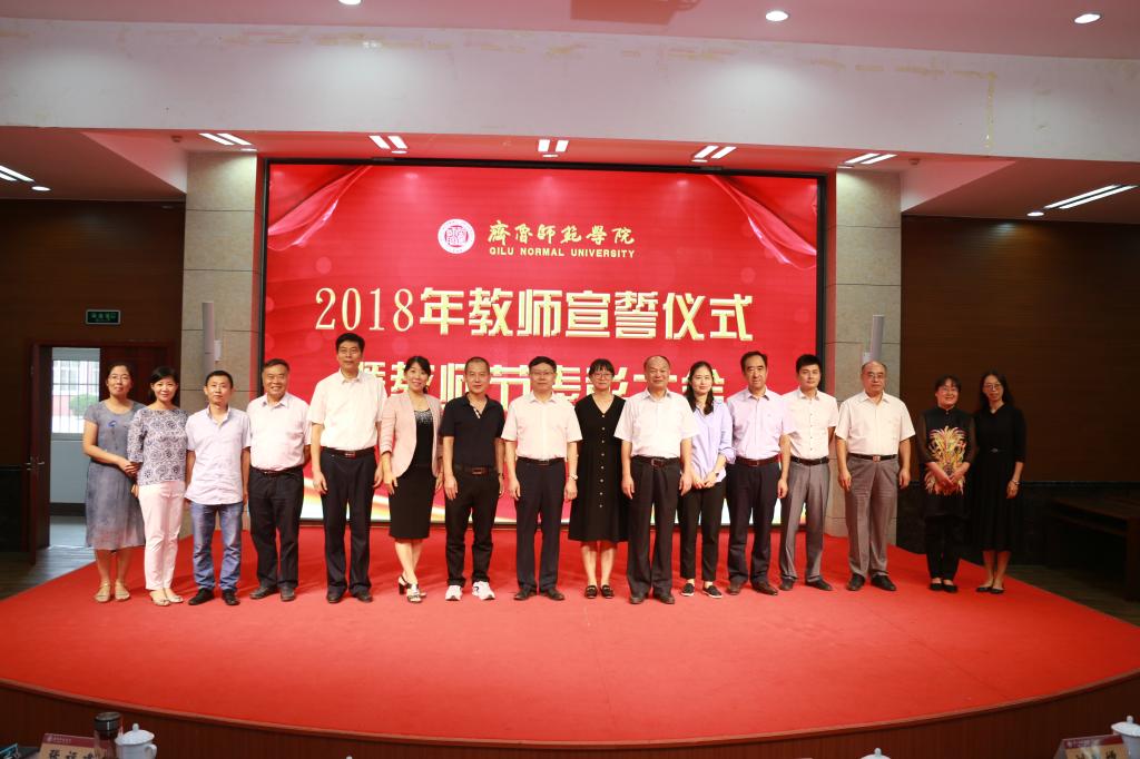 刘德增副校长宣读了《中共新利18全站app 委员会关于表彰2018年新利18全站app 最美教师的决定》;与会人员集体观看了2018新利18全站app 最美教师事迹宣传片;校领导为最美教师进行了颁奖;教师代表、山东省高校黄大年式教师团队负责人、马克思主义学院教授李伟博士,新入职教师代表、数学学院张珍博士分别作了发言。在山东省优秀教师、山东省四有教师、山东省高校优秀共产党员、教师教育学院王维教授的带领下,全体师生紧握右拳,面向国旗庄严宣誓:“我志愿做一名光荣的人民教师,忠诚党的教育事业,贯彻国家教育方针,履行教师神圣职责。尊重个性,关爱心灵,修仁爱之德……”,用铿锵有力的声音许下了自己的坚定承诺。