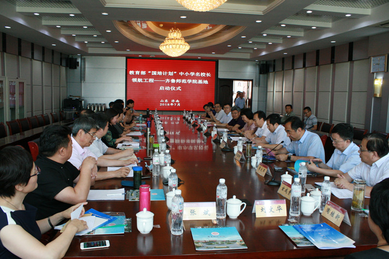 7月1日,教育部“国培计划”中小学名校长领航工程新利18全站app 基地举行启动仪式。教育部全国教师培训专家工作组秘书长黄贵珍,国家教育行政学院副院长于京天,教育部中小学校长和幼儿园园长国家级培训项目管理办公室副主任于维涛,山东省教育厅教师工作处处长刘宝君,校党委副书记、校长林松柏,副校长刘德增出席启动仪式,校基地理论导师、实践导师以及来自北京、海南、湖北、安徽、宁夏、福建、辽宁的七位名领航班校长等参加了启动仪式。启动仪式由基地负责人、副校长、导师组组长刘德增主持。
