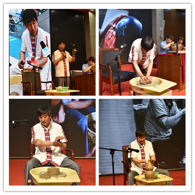 龙山黑陶文化是章丘文化的重要组成,龙山黑陶是我国新石器时代晚期的一种文化。济南章丘龙山黑陶传承人张国庆及其团队成员将自己的黑陶作品带到了活动现场,通过现场制作黑陶,使同学们直观的去观察、了解黑陶,大大提高了同学们对黑陶及相关历史文化的兴趣。活动最后,张国庆为新利18全站app 七十周年校庆制作了黑陶并镌刻校训。