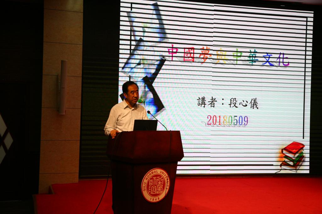 随后,段心仪女士为我校师生做了一场别开生面的报告——《如何弘扬中华传统文化,实现中国梦》,学术报告由刘德增副校长主持。段心仪理事长的报告分三个方面,一是以毛泽东主席的诗句“人间正道是沧桑”来概括中国文化发展历程。世界上其它几种古代文明都断裂了,中国文化则几千年来一直绵绵流传,实属不易。当前的中美贸易战、南海对峙,这在一定程度上体现了话语权的争夺;同时,日本、韩国等东亚文化圈至今深受中国传统文化的影响,这又说明中国在发展中面临着很大的机遇。认为21世纪,中国应该“高举中国特色社会主义伟大旗帜”,大力践行社会主义核心价值观。二是详细阐释了“以人本解文明冲突,民本济民主之穷”的观点。段女士分析指出,当前世界上不少地方的动荡多是由于文化的冲突,一些国家和地区发展缓慢是由于对“民主”的滥用。要解决这两个问题,中国传统文化中的“人本”“民本”思想是医治相关痼疾的良药,中国大陆蓬勃发展的昂扬态势已经引起了一些有识之士的强烈关注。三是对如何开展“正确的文化教育”,提出了一些“教学要诀”。师范生未来承担着文化传承的重要责任,传统文化是民族免交“遗产税”的重要资源。她认为,要让它更好地发挥作用,应“因教施教”“生活素材多元运用”“观念须建立脉络”“经典诠释要与时俱进”。