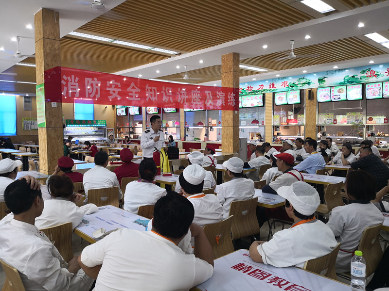4月19日,为进一步加强餐饮安全应急管理,提高餐厅从业人员的消防安全防范能力,后勤管理处联合保卫处组织开展了消防培训及演练活动。各餐厅负责人及骨干员工等100余人参加了培训。