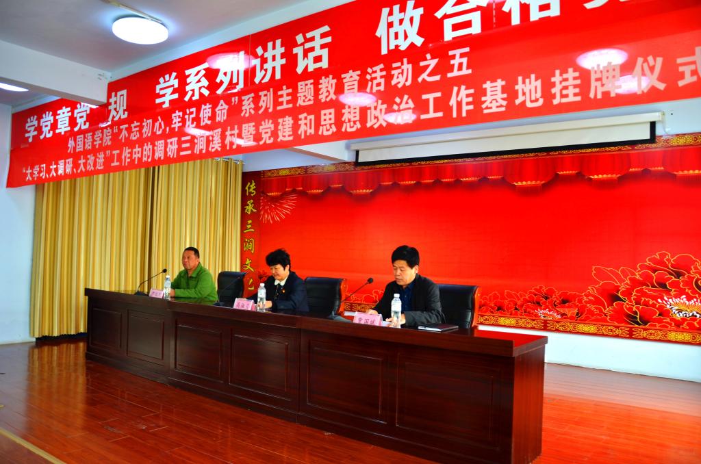 外国语学院进行三涧溪村党建和思想政治工作基地挂牌仪式,高淑贞、贾国斌共同为基地揭牌。