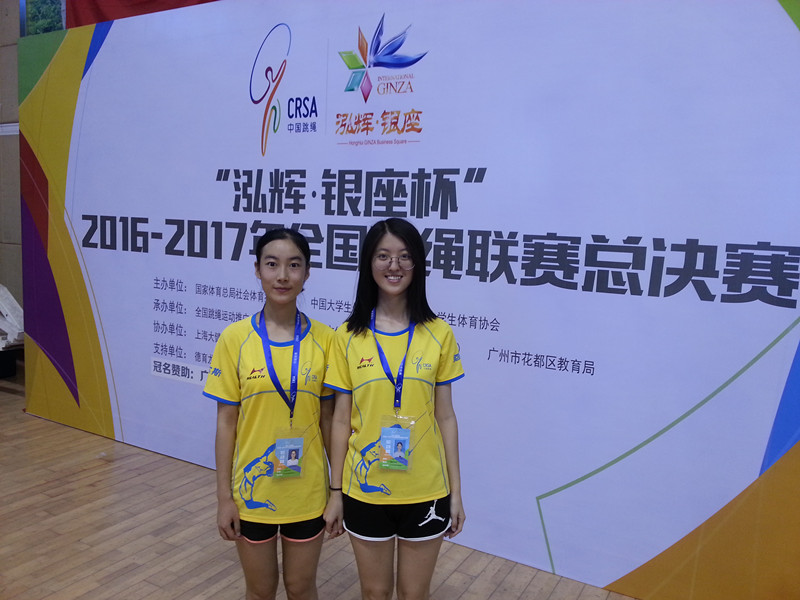 7月8日-13日,2016-2017年度全国跳绳联赛总决赛在广州花都举行。来自我校文学院、教师教育学院的于文君、迟文捷两名同学分别荣获大学组连续三摇跳、800个定数计时跳第一名,30秒双摇跳第三名,30秒间隔交叉单摇跳第六名。体育学院金嘉鹏老师荣获“最佳教练员”称号。