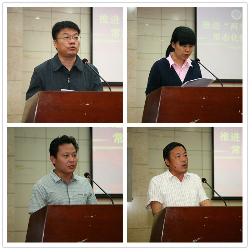 学生工作处党支部、后勤管理处党总支、教师教育学院学生党支部、数学学院党总支等4个单位作了典型发言,交流了去年开展“两学一做”学习教育好的做法和心得体会。
