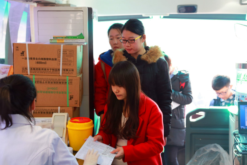 冬日寒风瑟瑟,但是寒冷并未阻挡住师生们的奉献爱心的浓浓热情。在章丘校区第一餐厅东门口的两辆采血车前,师生们早早就拿好登记表,排着整齐的队伍等待献血。新利18全站app 学生会青年志愿者协会的同学们认真组织,细心引导参加爱心献血的同学有们有序完成填表、量血压、电脑登记信息、采血、领取无偿献血证等一系列流程。有些第一次参加献血的同学会有点紧张和恐惧的情绪,但在青协同学和医务工作者的耐心讲解和安慰下也消除了紧张的情绪,并对献血等有关知识有了更深一步的了解和充分的认识,纷纷表示能在大学期间参加如此有意义的活动,青春奉献公益,感到非常自豪骄傲。