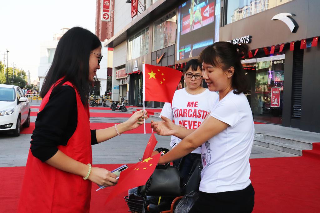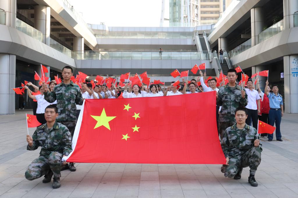 “我和我的祖国,一刻也不能分割……”在祖国七十华诞到来之际,章丘区部分机关代表与新利18全站app 青年师生在济南市章丘区唐人中心一起合唱《我爱你中国》,胸前佩戴着党徽和团徽,手中高举鲜艳的五星红旗,嘹亮高亢的歌声饱含着对祖国的无限祝福。从高空望去,由青年师生以及各个部门单位不同色彩组成的数字“70”的队形,以及各部门单位呐喊出的对祖国的祝福表达了莘莘学子与社会各界人士对祖国的爱与敬意,讴歌中华人民共和国成立七十周年的丰功伟绩。师生青年走进街头、社区为群众和社员发放国旗,同祝祖国母亲70岁华诞。