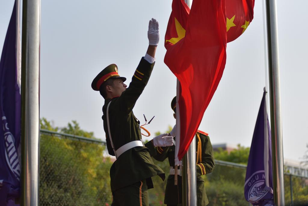 9月29日上午,我校2019级新生军训成果汇报暨总结表彰大会在章丘校区田径运动场隆重举行。校党委书记王玉华,党委副书记、校长林松柏,中国人民解放军某部队副教导员张坤,副校长刘德增、张福建、王海,纪委书记李启波出席大会。承训部队官兵,学校相关职能部门负责人,各学院院长,党总支书记、副书记,团总支书记、副书记、辅导员及2019级全体新生参加大会。王玉华书记向承训部队赠送锦旗,林松柏校长做军训总结讲话,大会由张福建副校长主持。
