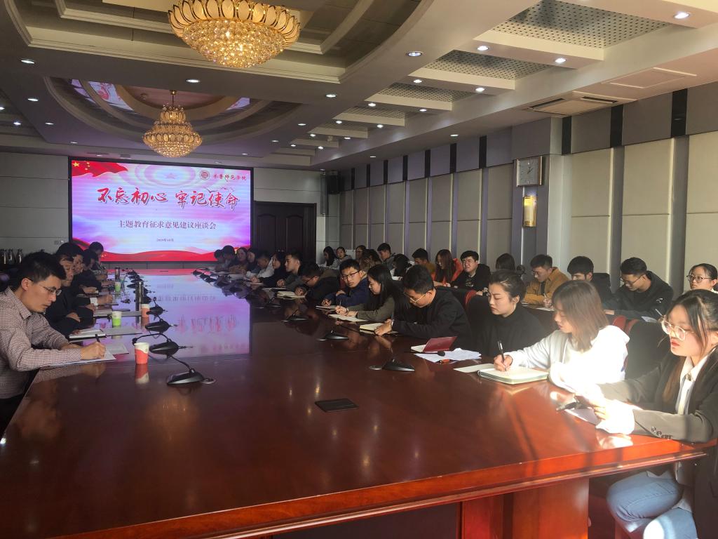 10月15日下午,我校在章丘校区图书馆四楼会议室组织召开“不忘初心、牢记使命”主题教育学生层面的征求意见建议座谈会,校党委委员、副校长张福建出席座谈会,党委办公室、组织部、学生工作部(处)、党委保卫工作部、教务处、后勤管理处、图书馆负责人以及各学院28名学生代表参加了会议。