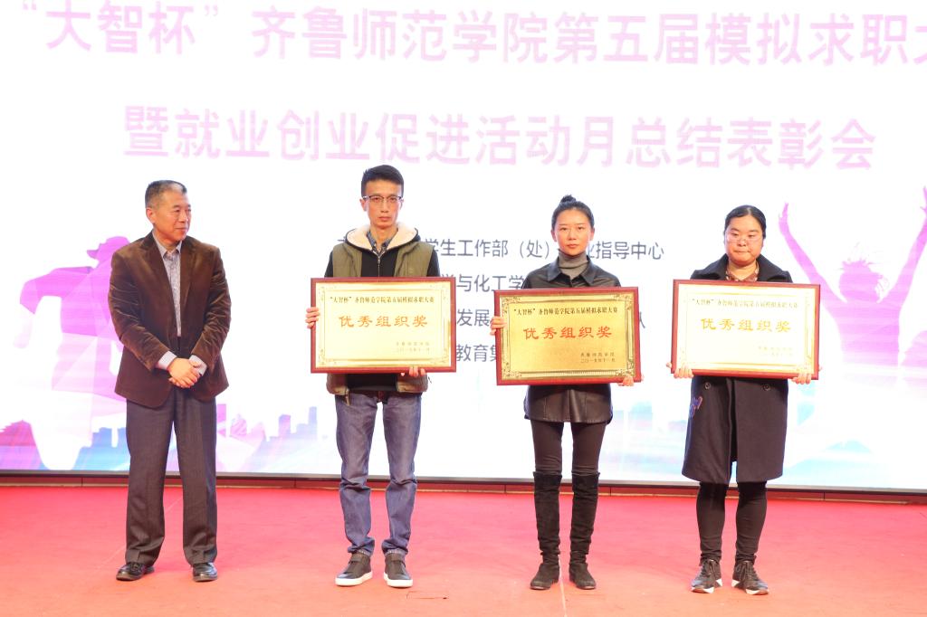 在就业创业活动月总结表彰环节中,教师教育学院辅导员岳雍君、化学与化工学院辅导员邹少爽、美术学院辅导员李永荣获“先进个人奖”。教师教育学院、化学与化工学院、美术学院荣获“优秀组织奖”。