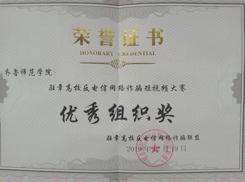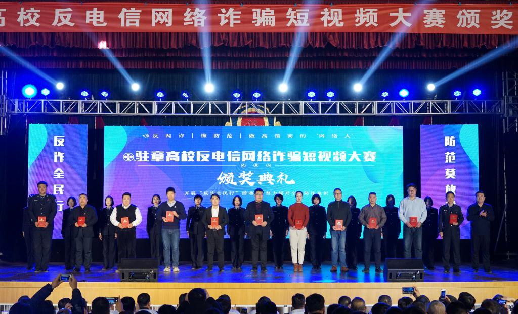 “反诈全民行,防范莫放松。”为了实现章丘大学城无诈的目标,增强驻章高校大学生防诈防骗意识,12月19日下午,驻章高校反电信网络诈骗短视频颁奖典礼在章丘区公安分局礼堂隆重举行。我校党委副书记刘宝君同志,省教育工委安保处处长魏治法,区委常委、宣传部部长、教育工委书记李宝燕,经文保支队副支队长隋健及区高教办有关负责人、民警代表、受奖集体、个人共800余人参加颁奖典礼。