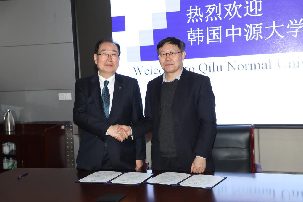 金斗年校长表示非常高兴能来我校访问,他非常喜欢我校校名“齐鲁”二字,并指出“齐鲁”二字很好地表达了我校的文化底蕴与办学理念,同时也对我校的办学特色赞誉有加。通过介绍和观看中源大学宣传片,我们了解到韩国中源大学创建于2009年,位于忠清北道,是基于“和谐、共生”这一办学理念而创办的一所私立综合性大学。该校以"“诚”、“敬”、“信”为教育目标,培养能够主导未来社会的全球型人才。