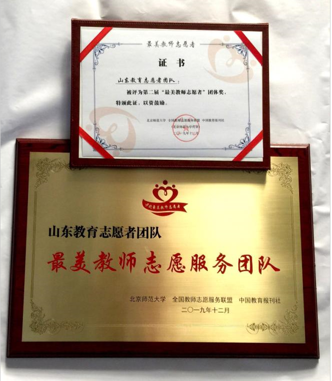 九、我校牵头组织的山东教育志愿者团体获得第二届全国最美教师志愿者团队奖