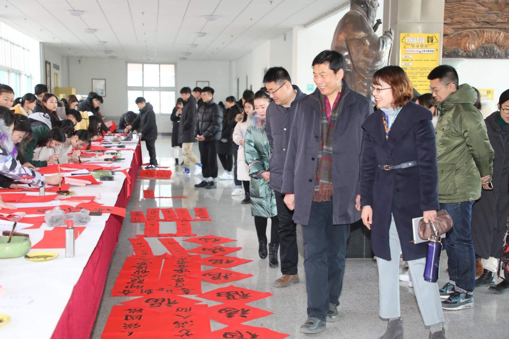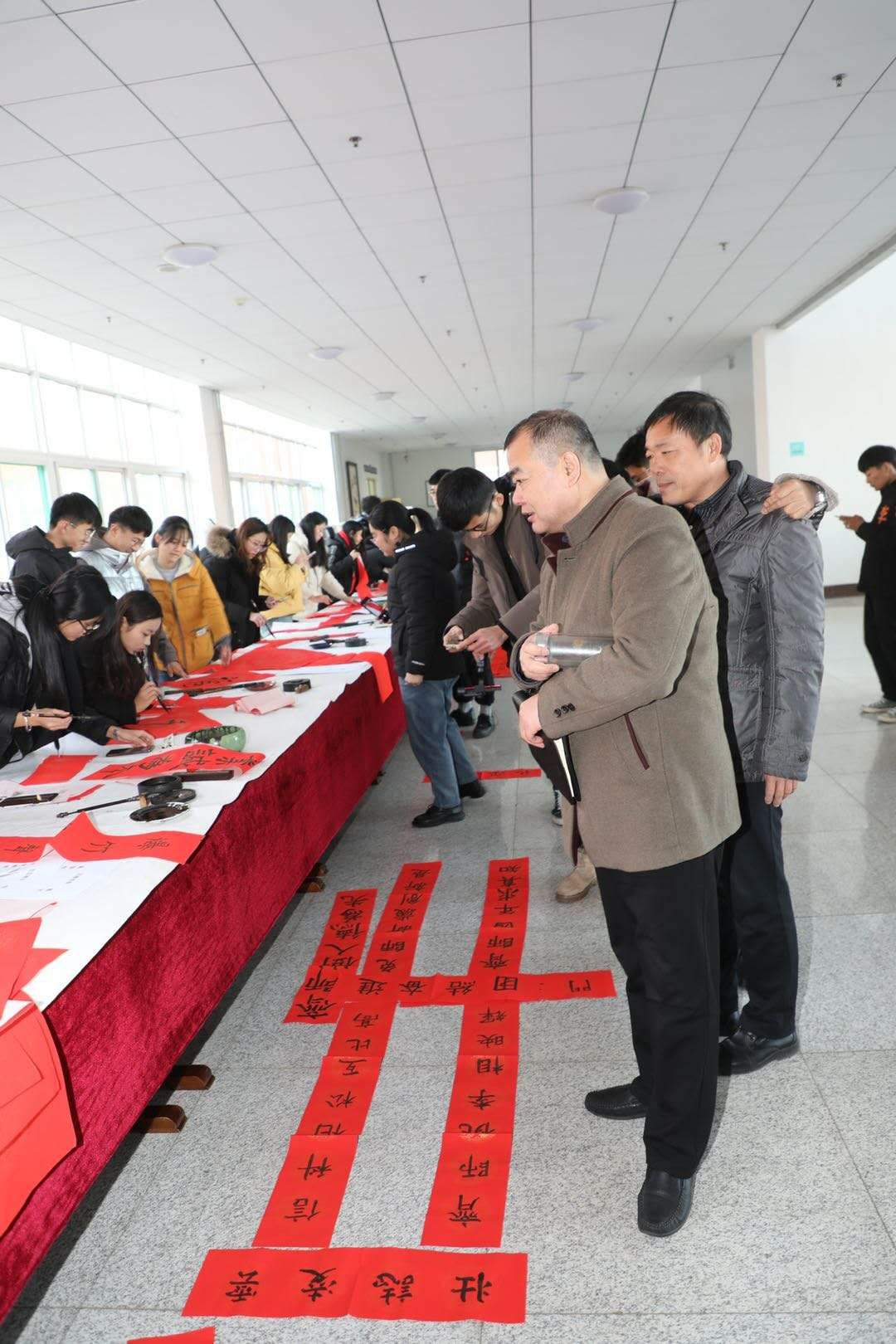 学校副校长张福建也来到活动现场。他和各学院党总支书记还有前来参加活动的师生们在书写桌前一一驻足观看,对学生的书法大加赞赏。张福建副校长对这次活动给予了充分肯定,他指出:“一定要将这种具有中国特色、中国气派、学校风格、学生素养的活动开展下去,传承发扬中华优秀传统文化,推动我校精神文明建设不断向前发展”,同时借此活动向全校师生送出新年的美好祝福。