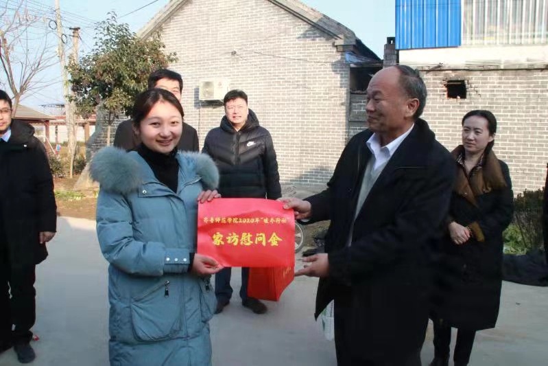 1月15日上午,走访组一行又来到菏泽郓城建档立卡贫困学生小薛家。走访中,校领导与其家人亲切交谈并了解到:小薛自幼父母离异,去年母亲不幸去世,父亲多年杳无音讯,由外公外婆抚养,一直生活在舅舅的房子里。如此沉重的负担也没有压垮小薛,她自立自强,励志进取,2019年被评为校级优秀学生、获得国家励志奖学金、校级奖学金。张福建副校长为小薛家庭送上慰问金和慰问品,他说,学校的贫困学生是每一位老师的孩子,学校和老师会想方设法关心和帮助他们成长成才,同时鼓励小薛以积极乐观的心态面对生活中的困难,立志成才。他指示在场的小薛所在学院领导和学校资助中心老师要随时关注小薛的学习、生活。学生工作部孙磊部长关切地询问小薛在校的生活费用,表示开学后会为小薛同学申请到学校的勤工助学岗位,帮助缓解生活压力,培养锻炼自力更生的精神。经济与管理学院党总支书记杨自旗表示会尽全力帮助小薛解决在校的学习和生活实际困难。