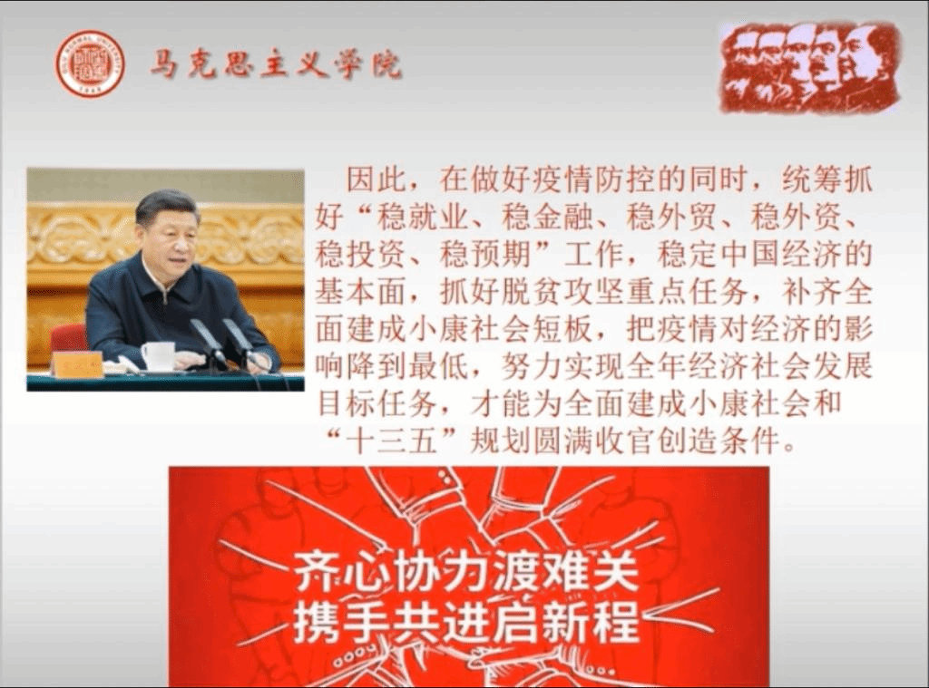 疫情防控就是一场最好的思政教育,“国是讲坛”还将陆续推出“从优秀传统文化视角看新冠肺炎防控”“新冠肺炎疫情防控中我国制度优势的彰显”“疫情防控中马克思主义基本原理的运用”等专题讲座,从多角度与广大同学开展线上战“疫”活动。