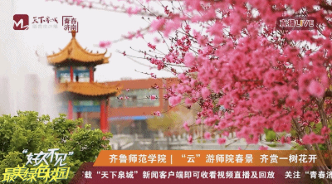 “云”游师院春景,齐赏一树花开。4月10日上午10点,由共青团济南市委、济南广播电视台联合发起的“好久不见——最美校园”融媒直播第七站走进了新利18全站app 。