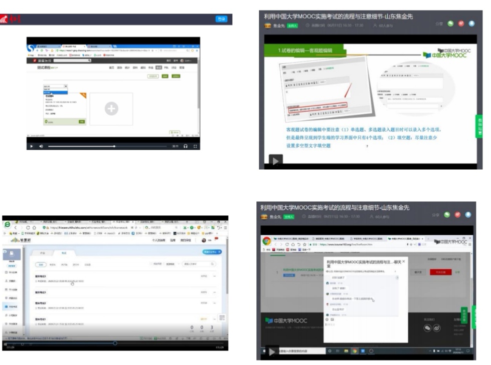 根据《关于2019-2020学年度第二学期期末考试(考查)的通知》有关安排,充分考虑疫情期间特殊情况,本学期决定组织线上期末考试,为组织好此次考试,教务处于6月11日下午分别邀请超星山东分公司讲师王彩玲、智慧树主讲人焦玉雪、周游和中国大学大学慕课MOOC运营中心山东负责人焦金先为我校教师举办了《如何利用超星泛雅网络教学平台进行线上考试》、《基于智慧树平台开展线上考试的功能培训》、《了解中国大学MOOC平台实施线上考试的流程和注意事项》的线上考试平台使用及经验交流培训会。本次培训会重点介绍了线上考试系统平台功能、流程操作和注意事项,我校所有任课教师及相关考试人员参加了本次培训。