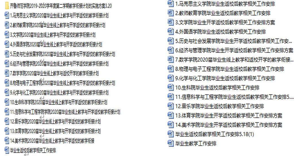 为确保 2020 年我校春季学期返校开学后各项工作的安全、平稳、有序,切实做好我校线上教学与返校开学后教学的有序衔接,保证学生“疫情期间”与“正式开学后”两段学习过程的“无缝衔接”,结合《山东省高等学校 2020 年春季学期开学条件核验细则》第45条,积极准备学生复学相关工作。科学制定了《新利18全站app 2019-2020学年度第二学期教学衔接计划实施方案》,组织各学院完成了《2020届毕业生线上教学与开学返校的教学衔接计划》《毕业生返校后教学相关工作》《2019-2020学年度第二学期在校生教学衔接计划实施方案》。