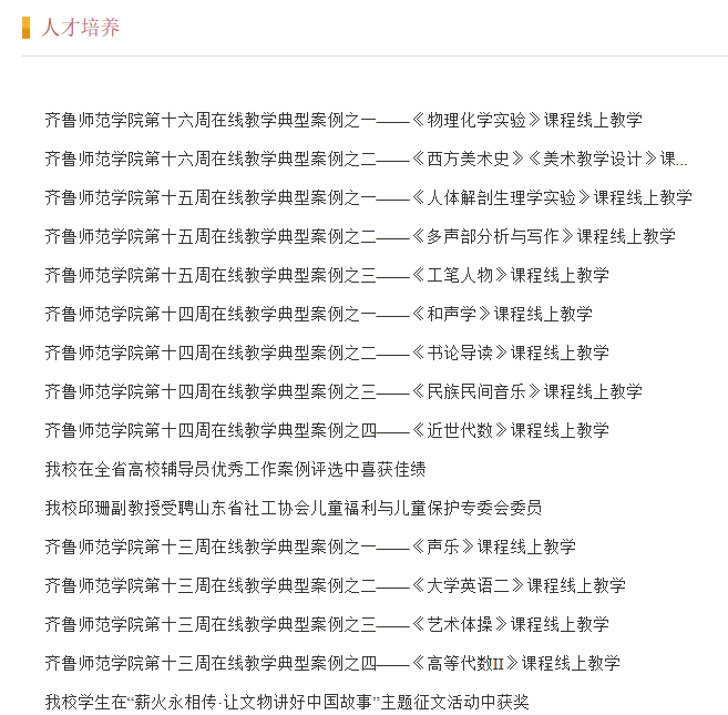 为进一步提高学校线上教学质量,积极推广我校优秀教学经验和模式,发挥示范作用,教务处工作人员每周认真审核各教学单位提交的教师在线教学典型案例,对各项材料进行梳理、编辑、并从中选取优秀案例在学校主页“人才培养”专栏中刊登,供广大教师学习和交流。
