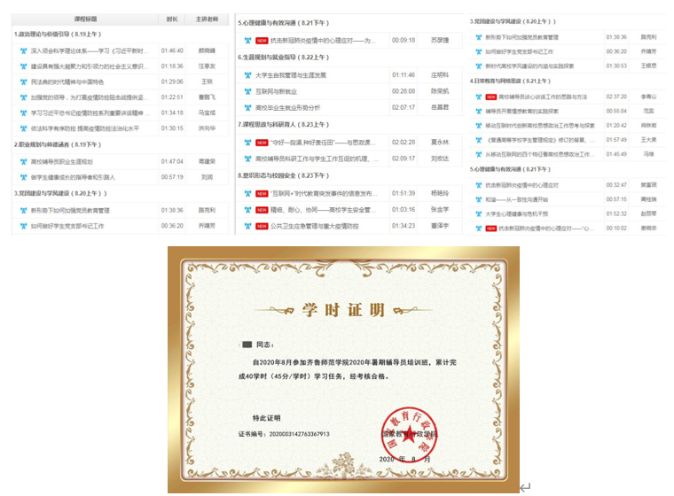 为深入贯彻落实习近平新时代中国特色社会主义思想,统筹推进疫情防控常态化下辅导员队伍建设和职业能力提升,提高“后疫情时代”我校学生工作的针对性和有效性,根据《普通高等学校辅导员队伍建设规定》文件精神,我校2020年暑期辅导员培训班线上集中培训于8月23日落下帷幕,此次培训为期5天,上线课程达2400余分钟,我校学生工作部、团委工作人员及全体专职辅导员共计90余人参加培训。