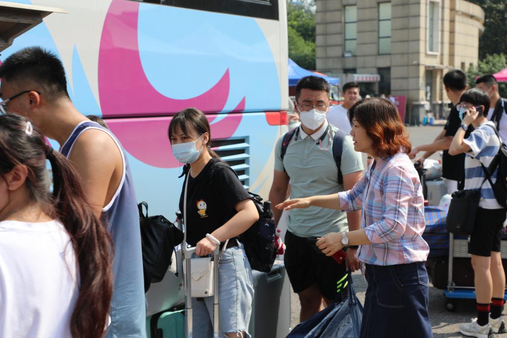 返校学生在进行身份证、校园一卡通、电子健康通行码核验,以及体温测量后,由指定通道进入校门,在学院报到处提交返校承诺书,扫描签到二维码进行报到注册及返校条件复审。根据学校疫情防控工作要求,返校学生随行人员不能进入校门,为给学生提供更加便利的服务,学校安排了校内临时摆渡车帮助学生运送行李。还有更多热心同学,顾不上收拾宿舍,放下行李就加入了帮助其他同学搬运物品的志愿大军之中,安静的校园顿时充满了生机活力与温暖。