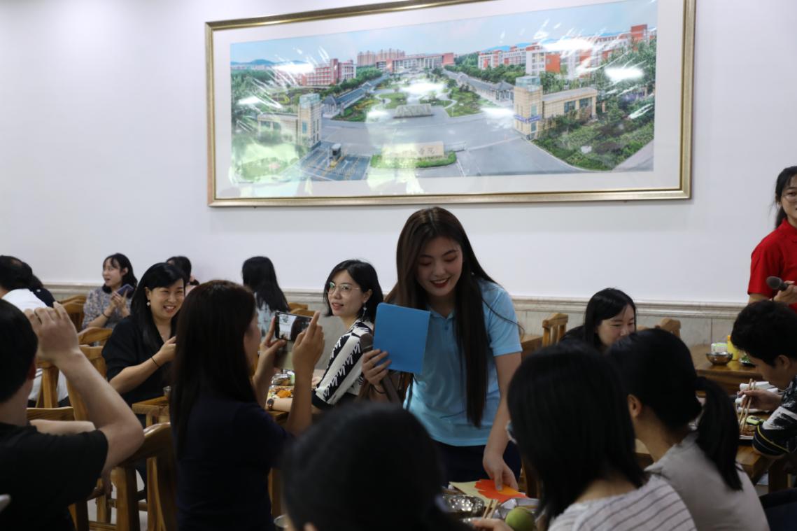 “敬爱的老师们,祝你们节日快乐!”9月10日是第36个教师节,为弘扬尊师重教的传统美德,我校20余名学生利用午餐时间在教职工餐厅举办了形式清爽、内容欢快、节奏紧凑的“快闪”送祝福活动。通过歌舞表演、赠送手工贺卡等方式向勤劳耕耘、默默奉献的一线教育工作者送去节日的温馨祝福和满心敬意。该活动由校团委主办,校大学生社团联合会、大学生新媒体中心、大学生记者站联合承办。