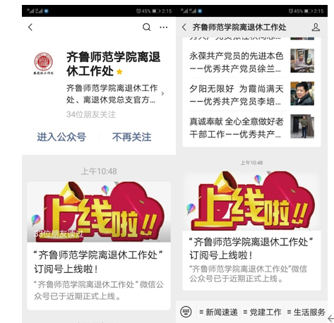 “新利18全站app 离退休工作处”微信公众号正式上线