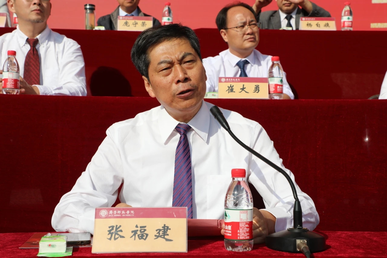 9月30日上午,我校2020级新生开学典礼暨军训总结表彰大会在章丘校区田径运动场隆重举行。校党委书记王玉华,党委副书记、校长林松柏,党委副书记刘宝君,副校长刘德增,党委委员、副校长张福建,党委委员、副校长王海,党委委员、纪委书记、监察专员李启波出席典礼。典礼由张福建副校长主持。