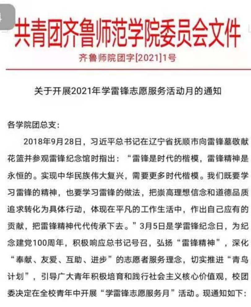 雷锋活动月期间,校团委还将创新思路,以线上+线下相结合的方式,接续推出青心声|我的志愿服务故事;青行动|学党史·话雷锋等线上志愿宣传品牌;以及“每周一特色”线下志愿服务项目。