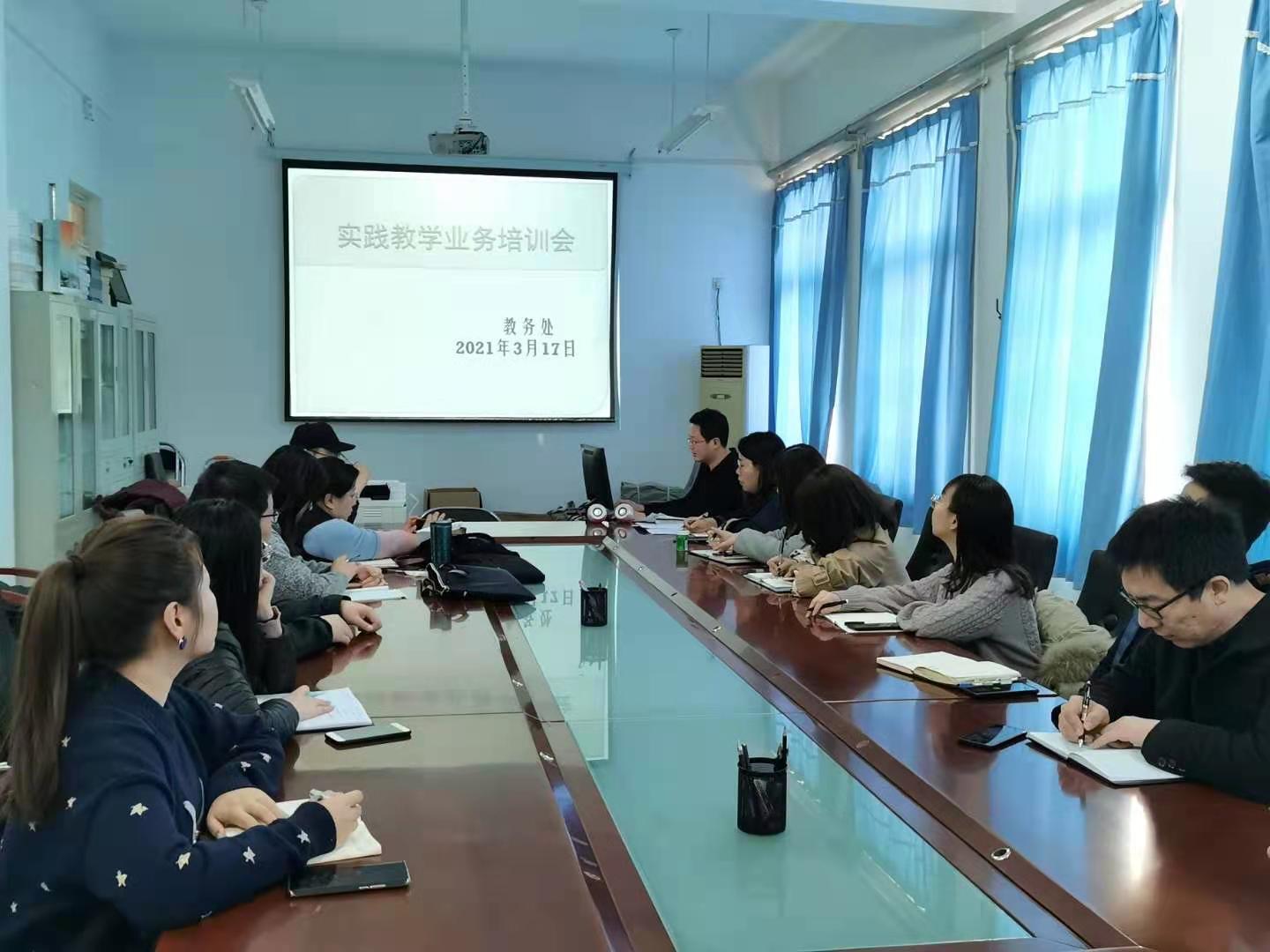 为进一步规范和改进实践教学工作,3月17日下午,我校在教务处会议室举办实践教学业务专题培训会。教务处副处长张海龙,各学院办公室主任、教学秘书以及教务处相关人员参加了培训会。培训会由张海龙主持。