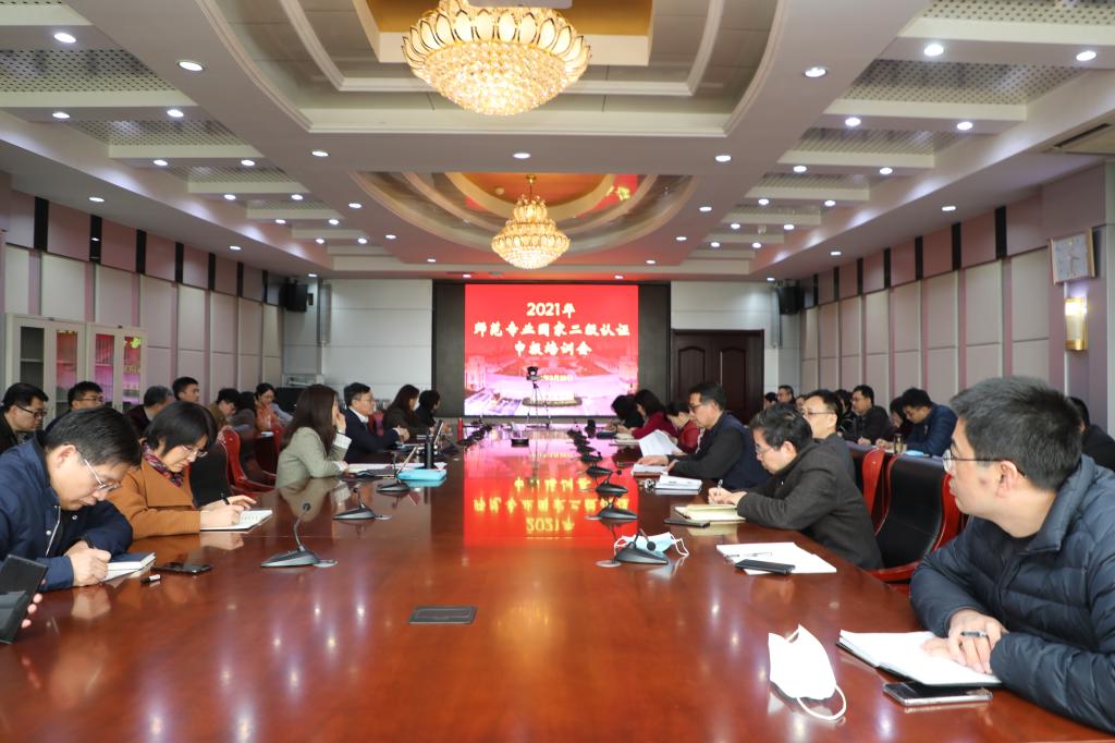 本次培训会采用线上线下相结合的方式进行。各二级学院院长、分管教学副院长,英语、数学与应用数学、生物科学、历史学、化学专业自评报告撰写人,教务处、教学质量监控与评估处负责人参加现场会议,会议由教学质量监控与评估处副处长宗美娟主持。各二级学院教学管理人员、党总支书记(副书记)、团总支书记、全体教师通过直播参加线上培训会。