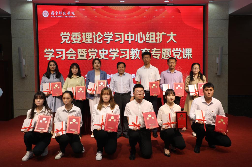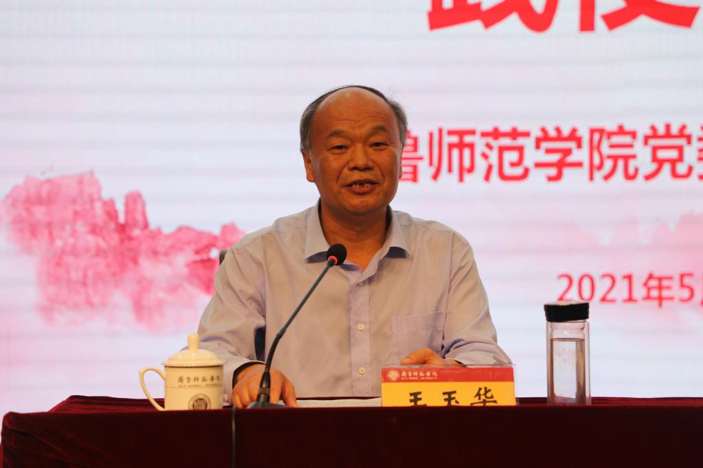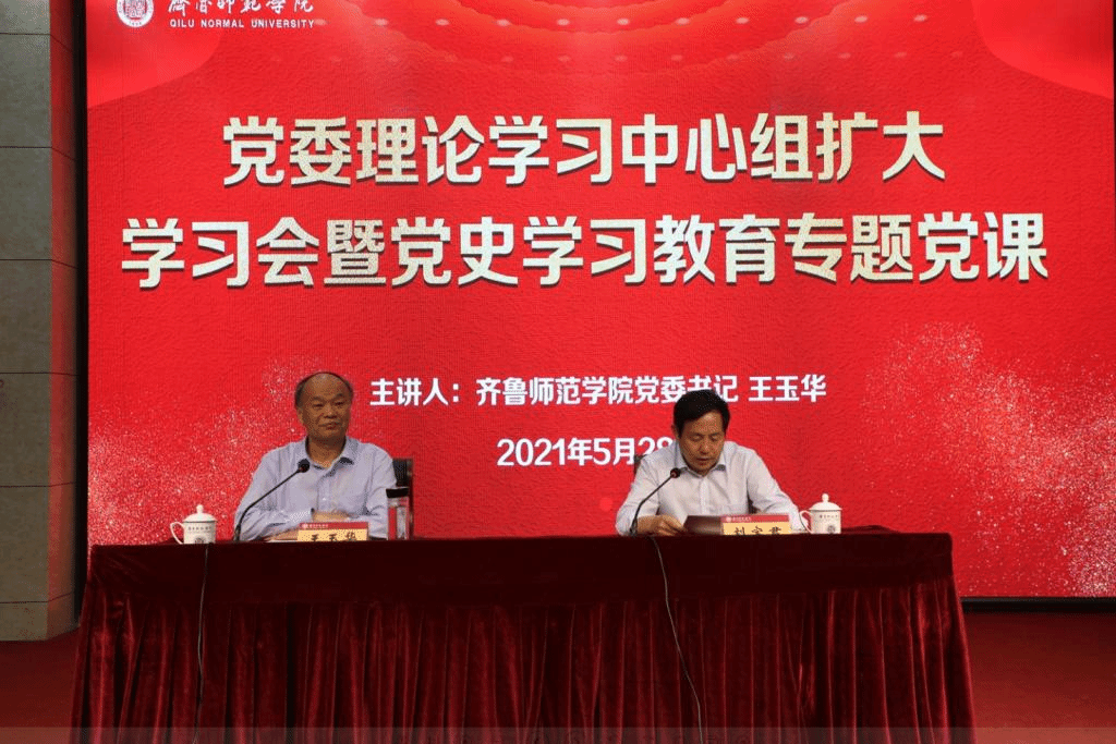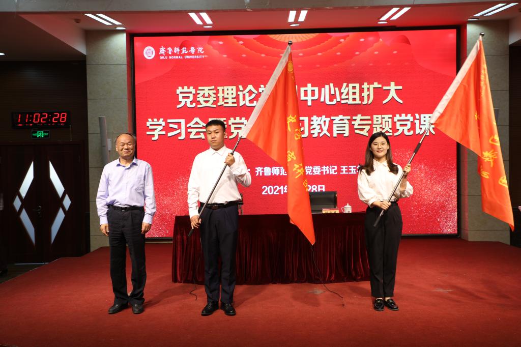 5月28日上午,新利18全站app 在章丘校区图书馆学术报告厅举行党委理论学习中心组扩大学习会暨党史学习教育专题党课,党委书记王玉华以《学党史坚守初心 践使命砥砺前行》为题给师生讲授党课,并为辅导员及学生党史学习教育宣讲团授旗。省委党史学习教育第十八巡回指导组刘亚斌、闫旭两位同志到会指导,学校领导、全体中层干部、全体辅导员以及部分学生代表参加。党委副书记刘宝君主持党课。