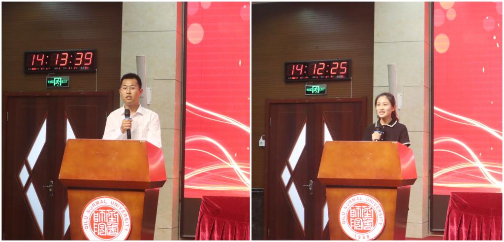2021届校友联络员代表2017级数学学院侯昭平和2020届校友工作志愿者协会代表闫泽新先后上台发言,他们首先感谢了母校以及老师的培养,同时也表达了对母校的依依不舍之情,并表示作为一名校友联络员可以对母校的发展做出积极的贡献,这是一份荣誉更是一份责任,在之后的学习工作中会一直关注母校的发展,在走到工作岗位后会继续开拓创新,扎实工作,为我校校友工作贡献一份自己的力量。