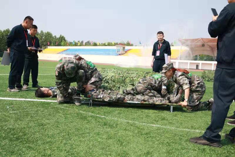 为了锤炼参赛选手战场遇险不乱、快速救治的能力,战场救护演练最大程度需要把战场设真、把情况设险、把技能练精。在实战中,我校参赛选手采取战术动作接近“伤员”,用拖拽法、侧姿匍匐搬运法等方法迅速运送“伤员”,展开”救治”。他们分工明确、团结协作默契,动作要领到位,完成度高,获得单项97分的好成绩。