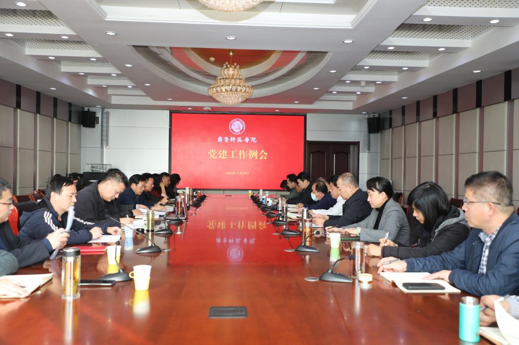 11月19日,学校在章丘校区图书馆四楼会议室召开党建工作例会。校党委副书记刘宝君主持会议并讲话,党委办公室、纪委、组织部、宣传部、统战部、学生工作部、保卫工作部、团委负责人,机关党委、各党总支书记参加了会议。